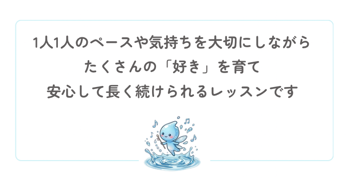 を大切に、一人ひとりの個性や、性格に合わせた丁寧な指導で、音楽が一生の友になるようお手伝いします。毎日笑顔が絶えない明るくポジティブなレッスンです♪
